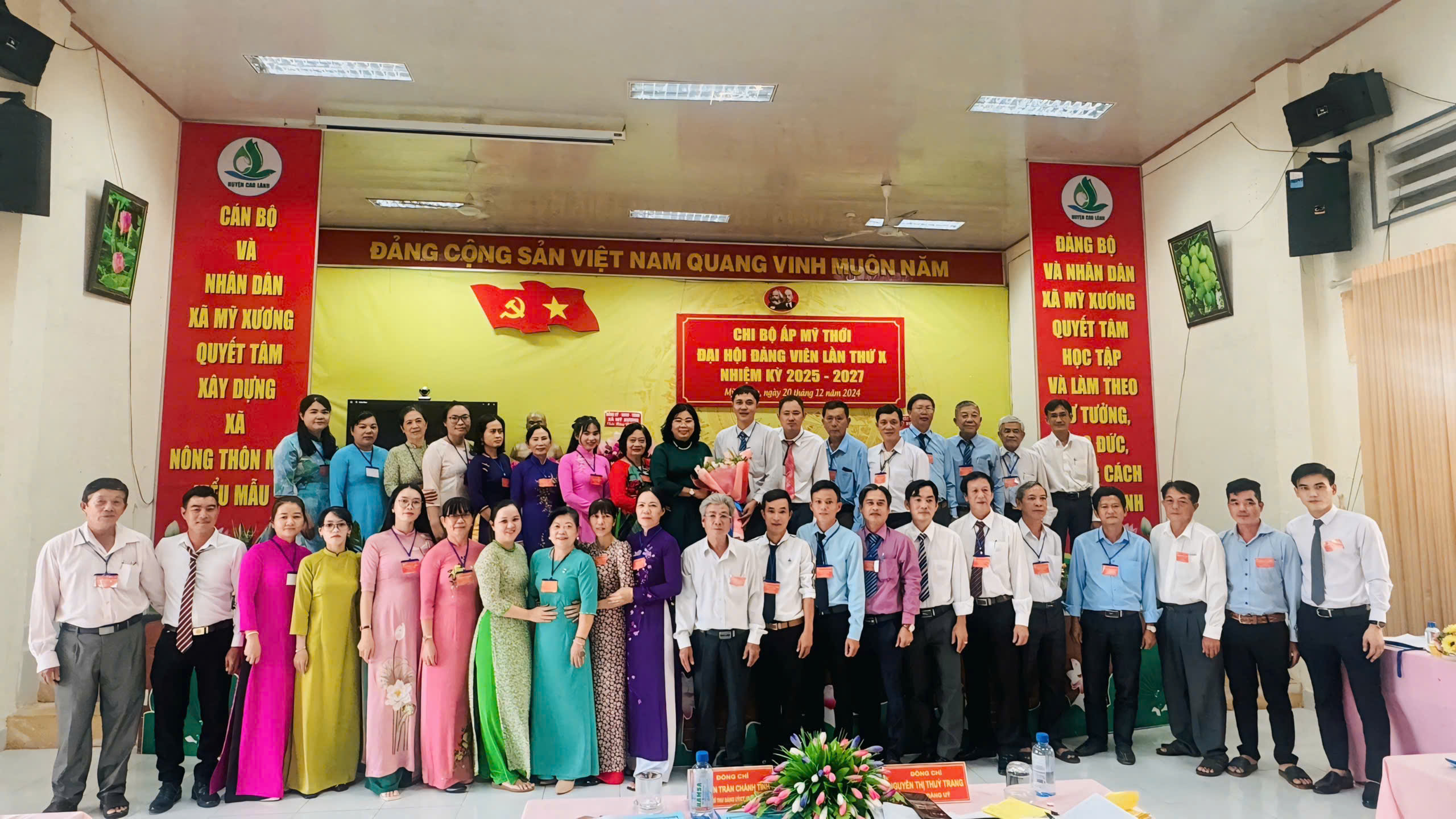 Đại hội đã bầu Chi bộ Chi uỷ gồm 05 đảng viên, Đồng chí Trịnh Chí Tâm tái đắc cử chức vụ Bí thư Chi bộ ấp Mỹ Thới, nhiệm kỳ 2025 – 2027. Đại hội cũng tiến hành bầu Đoàn đại biểu dự Đại hội đại biểu xã Mỹ Xương, nhiệm kỳ 2025 – 2030.