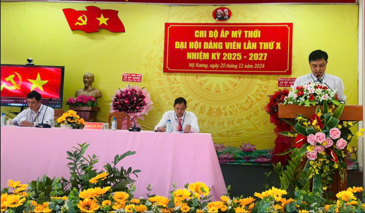Chiều ngày 20/12/2024, Chi bộ ấp Mỹ Thới, xã Mỹ Xương tổ chức Đại hội đảng viên lần thứ X, nhiệm kỳ 2025 - 2027. Đây là Chi bộ được Đảng uỷ xã Mỹ Xương chọn làm điểm tổ chức Đại hội để các chi bộ ấp học tập, rút kinh nghiệm tổ chức đại hội.