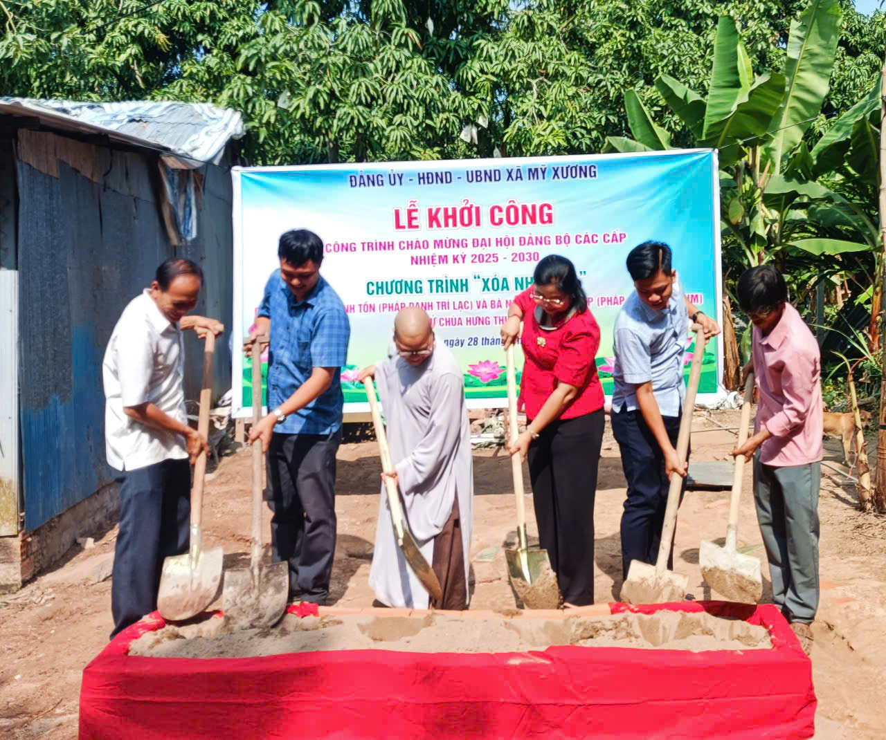 Lễ khởi công có Bà Nguyễn Thị Thuỳ Trang, Bí thư Đảng uỷ, Trưởng Ban chỉ đạo xoá nhà tạm, nhà dột nát Xã; Ông Nguyễn Trần Chánh Tính, Phó Bí thư Đảng uỷ, Chủ tịch UBND xã Mỹ Xương, đại diện nhà tài trợ sư cô Hạnh Tâm chùa Hưng Thiền đến dự.