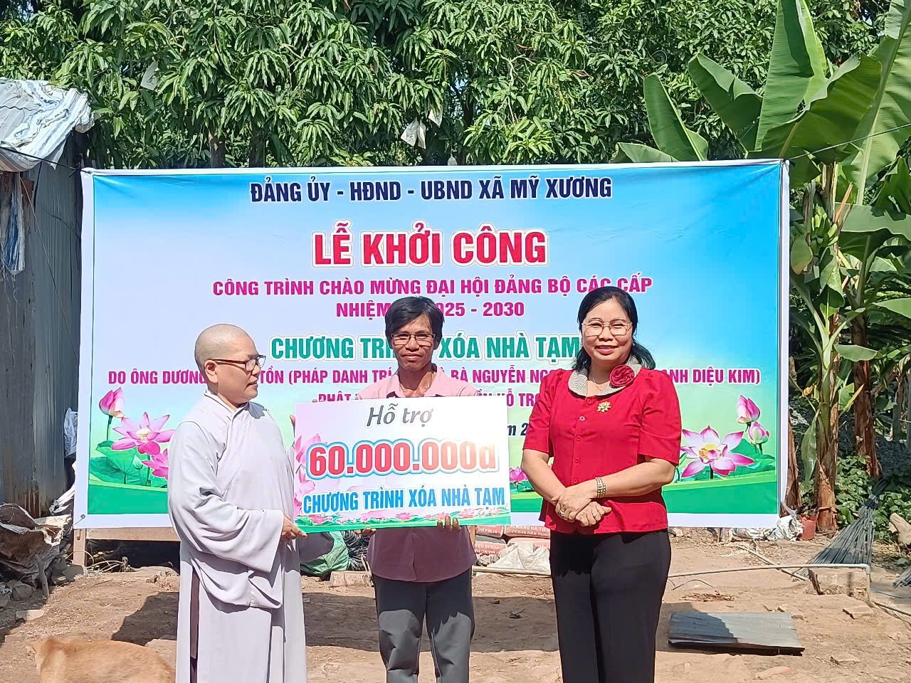 Ngôi nhà được khởi công xây dựng của hộ gia đình ông Nguyễn Văn Tuấn (ấp Mỹ Thới, xã Mỹ Xương), là gia đình có hoàn cảnh khó khăn, nhà đã xuống cấp và chưa có điều kiện xây mới. Đây là 1/30 căn nhà được Ban Chỉ đạo xóa nhà tạm, dột nát huyện phê duyệt xóa nhà tạm, nhà dột nát trên địa bàn năm 2025. Theo đó, gia đình ông Tuấn được Ông Dương Thanh Tồn và Bà Nguyễn Ngọc Điệp thông qua chùa Hưng Thiền hỗ trợ 60 triệu đồng để xây dựng căn nhà có diện tích hơn 46m2, đảm bảo “3 cứng”, có nền móng cứng, vách và mái lợp tôn.